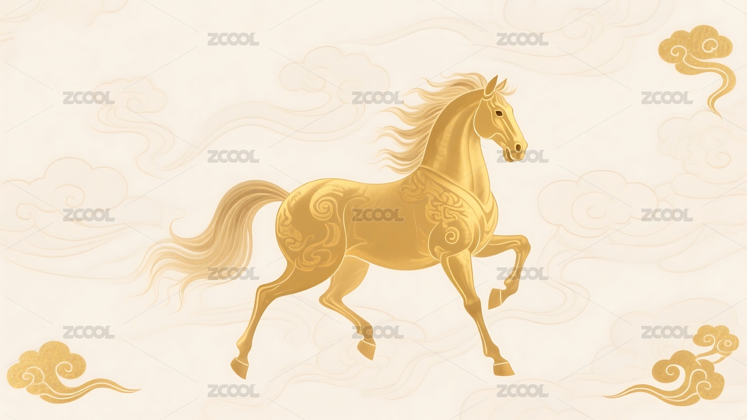 金色骏马祥云背景