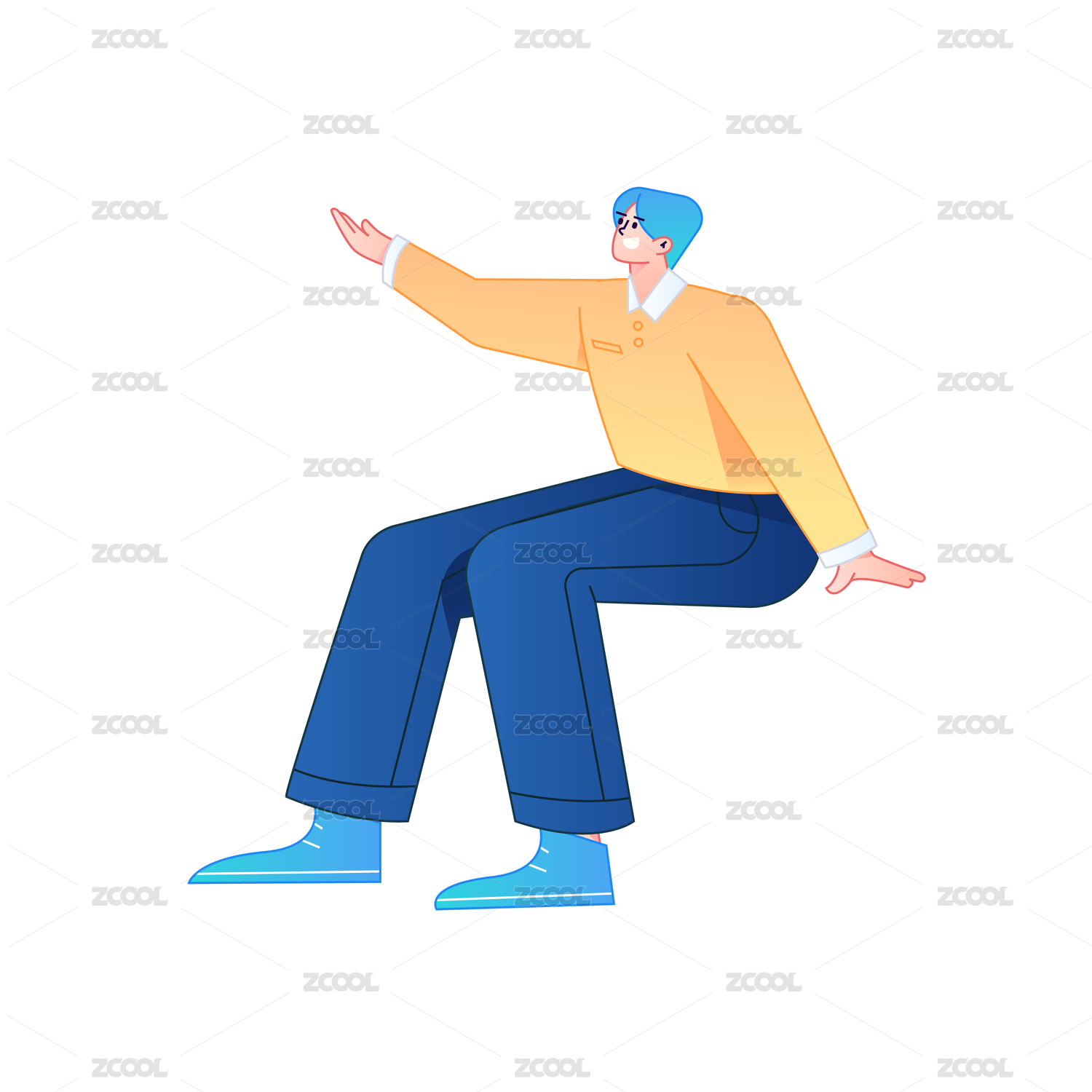 人物坐姿造型互联网矢量扁平渐变插画
