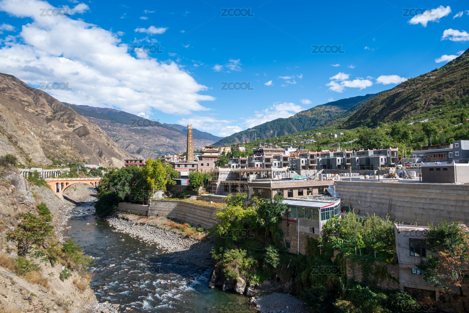 四川阿坝茂县中国古羌城和茂县城市风光航拍