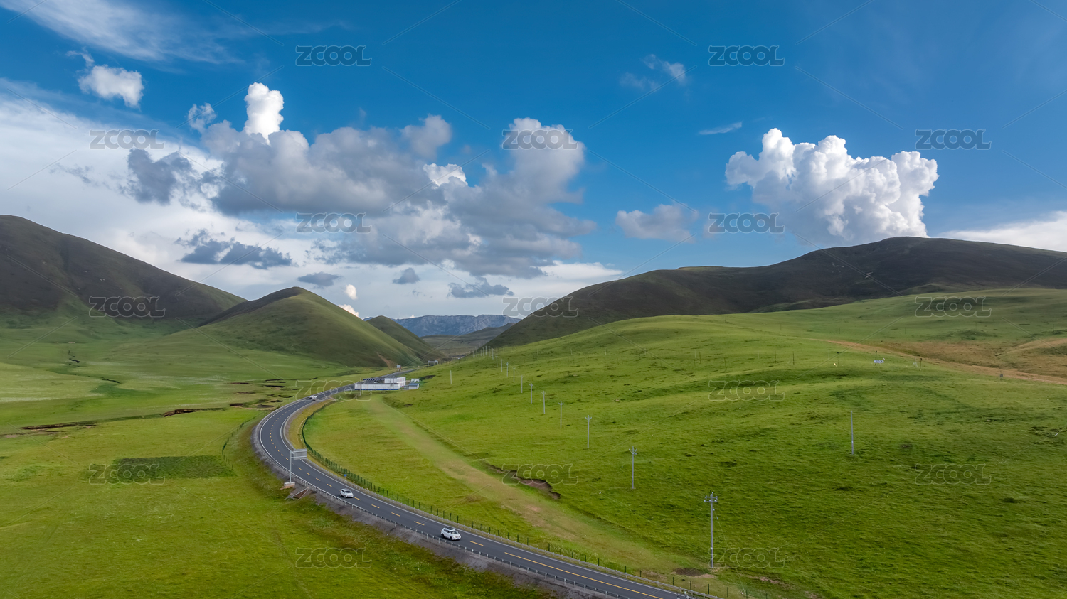 中国,四川,阿坝,若尔盖草原,航拍,天空,白云,公路,山谷,山