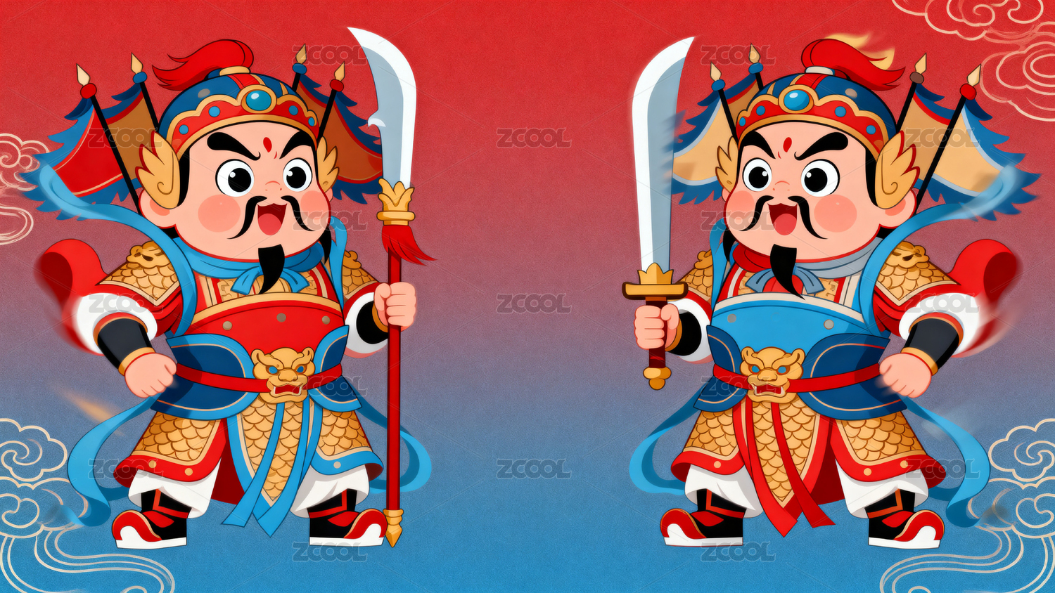 新年,节日,春节,背景,元旦,门神,门贴,神仙,威武,庆祝