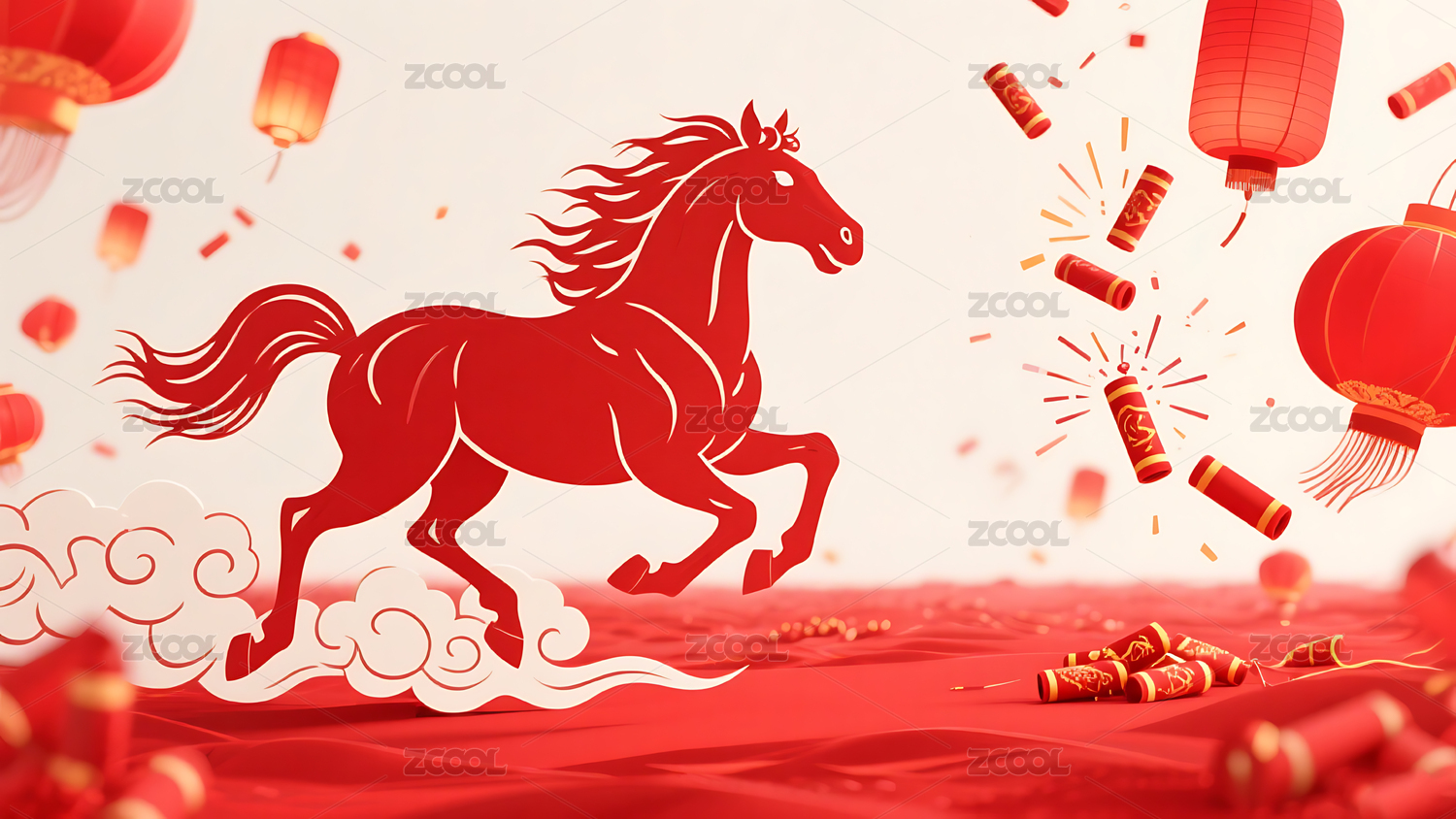 骏马,奔跑,动物,12生肖,红金色,商务,节日,新年,元旦,马年