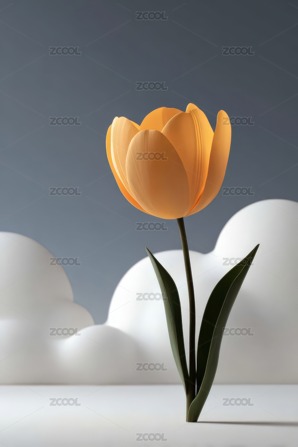 梦幻,唯美,背景,橙色,柔和,艺术,天空,郁金香,云朵,花朵