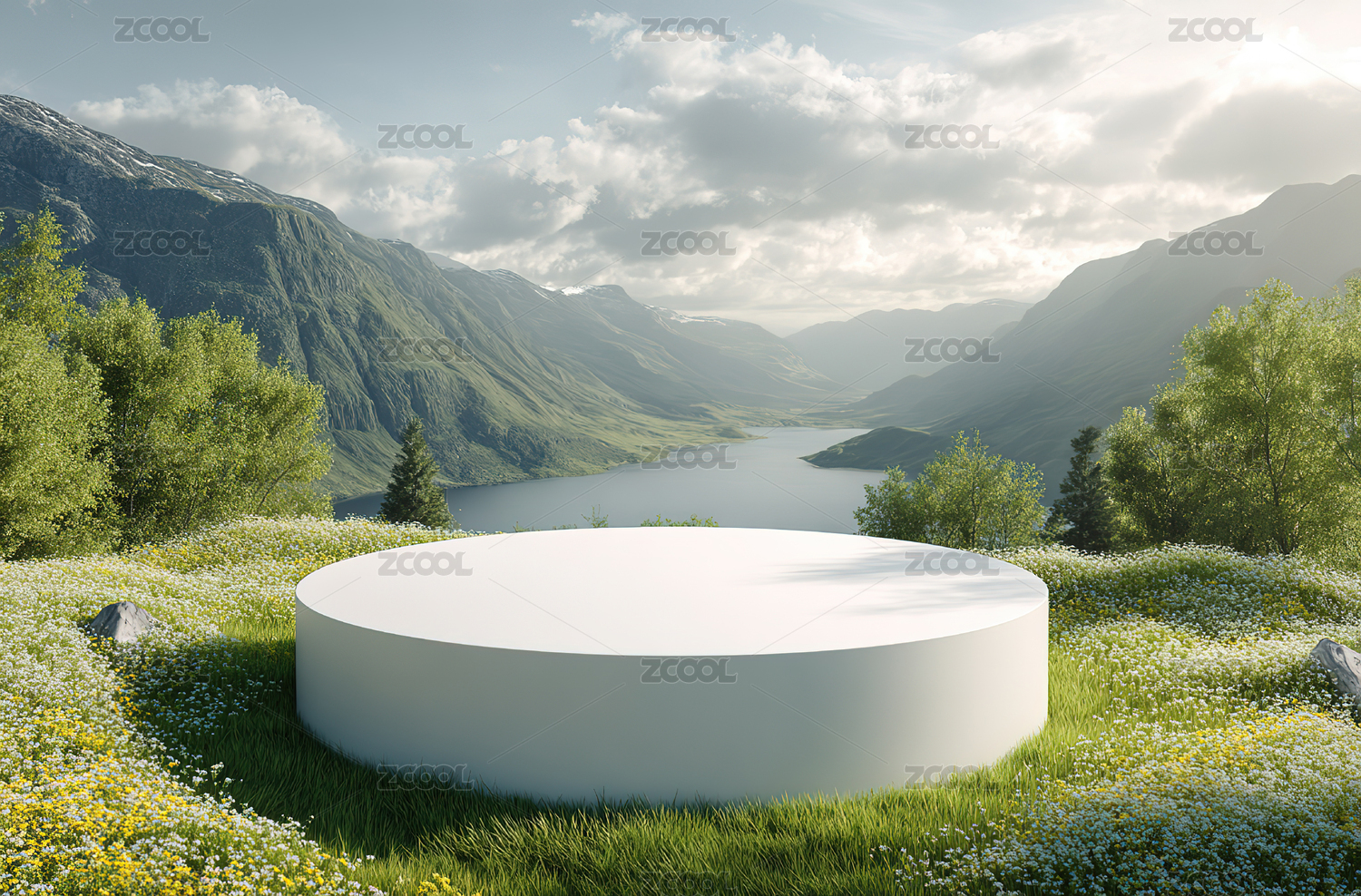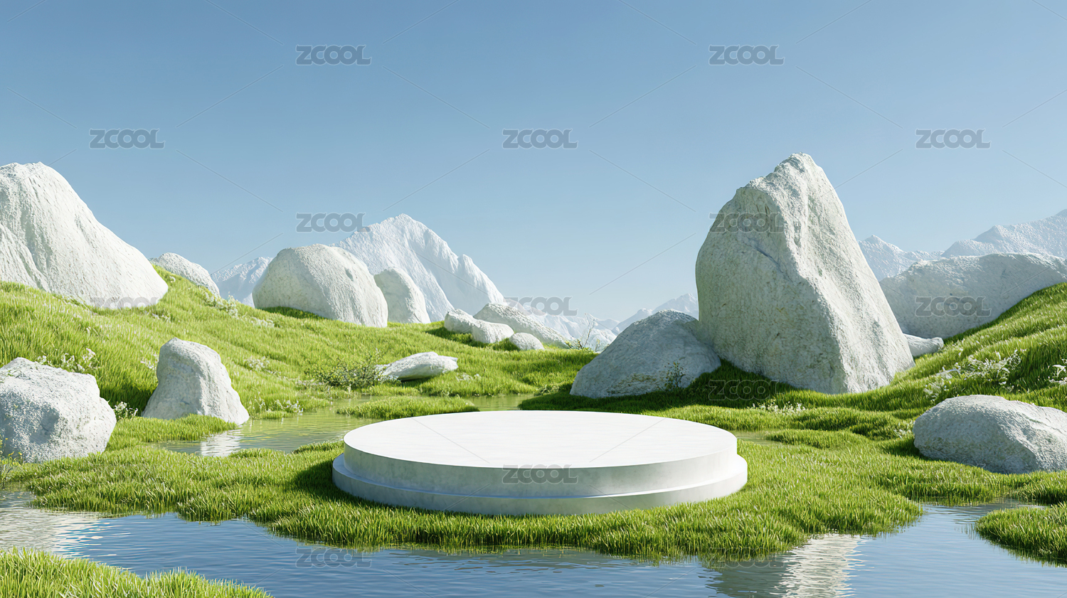 草地,平台,圆形,自然光,户外,景观,简约,现代,设计,环境