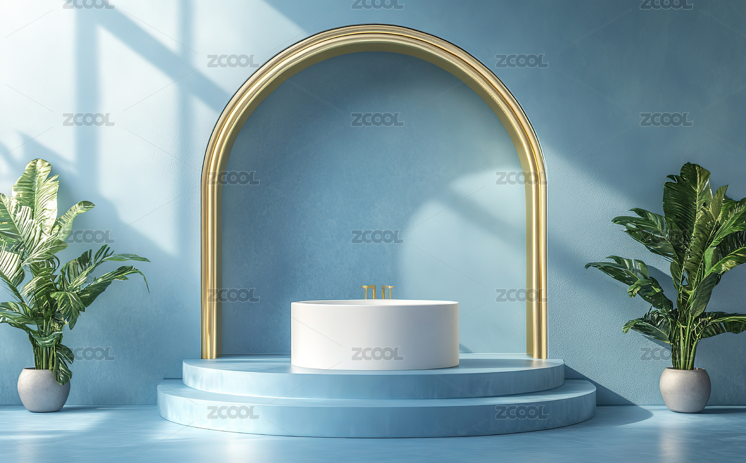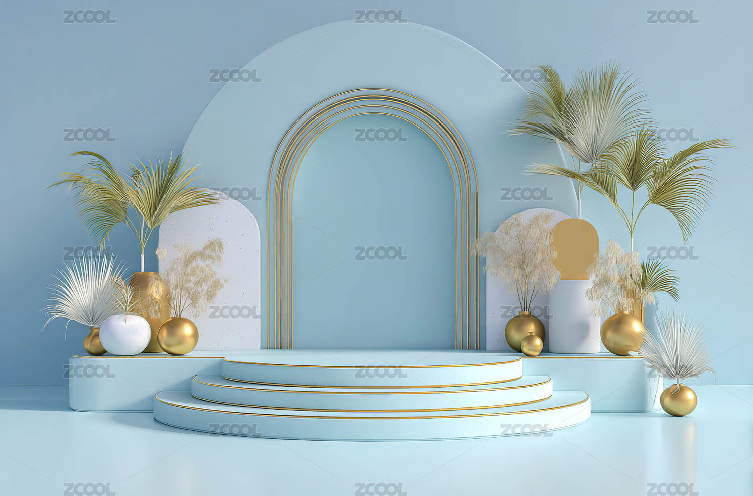 蓝色拱门阶梯装饰场景