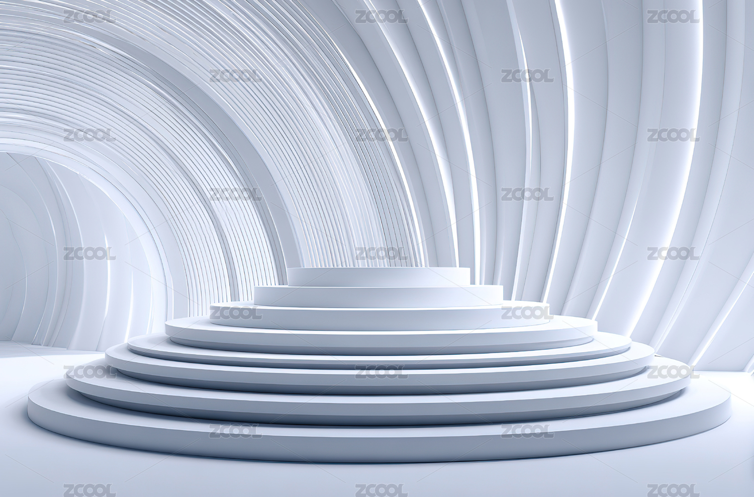 柔和,白色,曲线,波浪,光线,空旷,弧形,平台,几何,现代