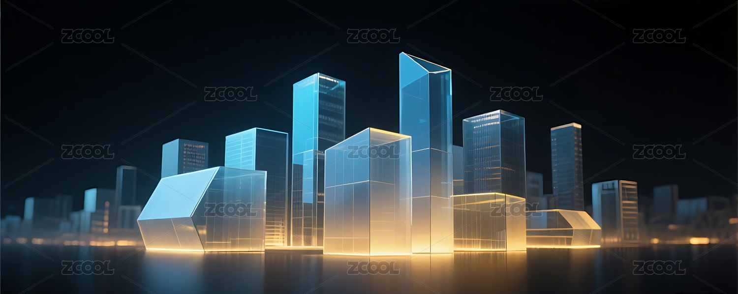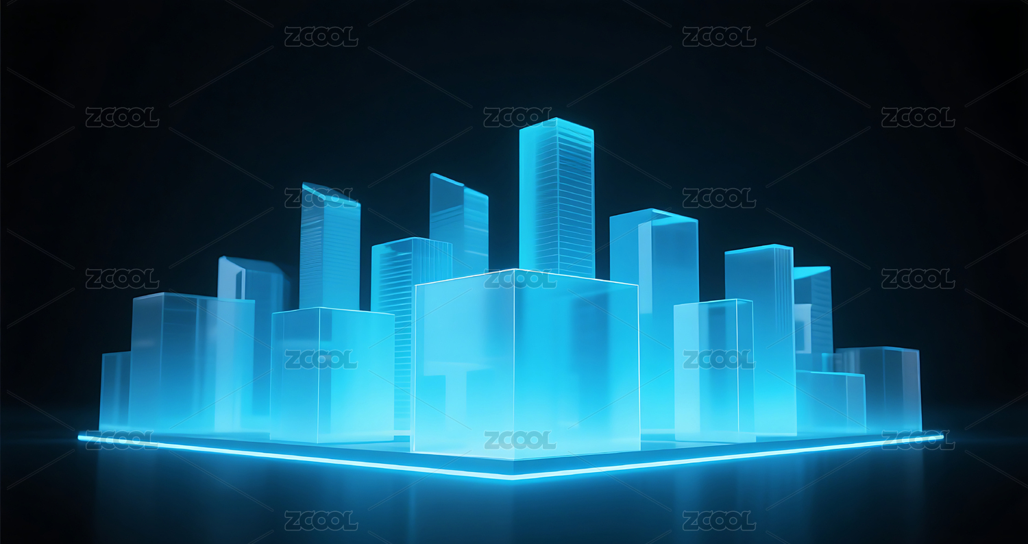 蓝色商务科技未来玻璃质感图形设计城市建筑