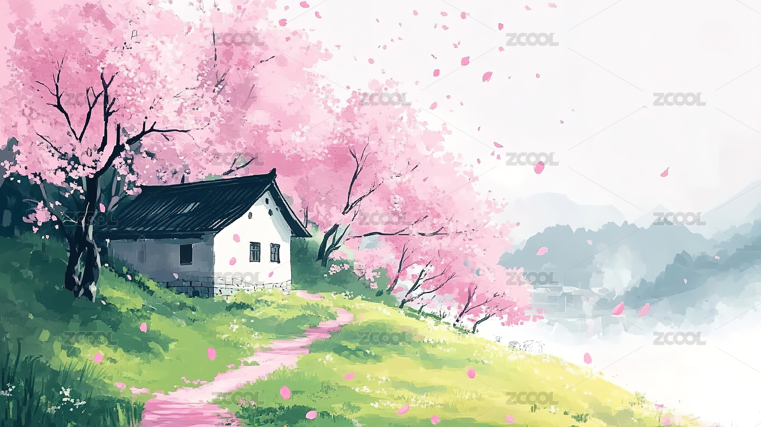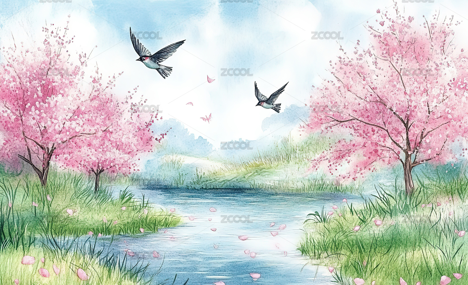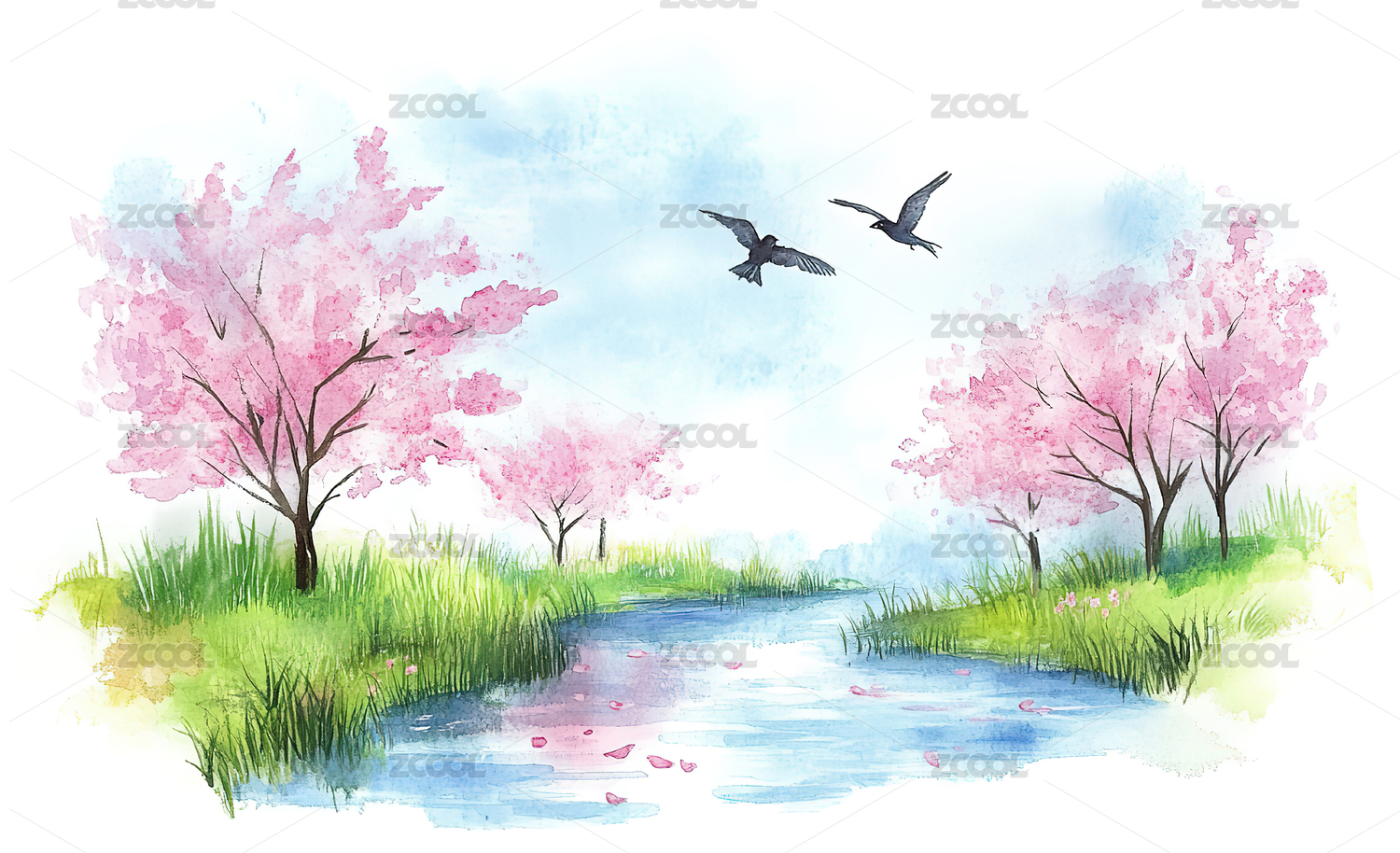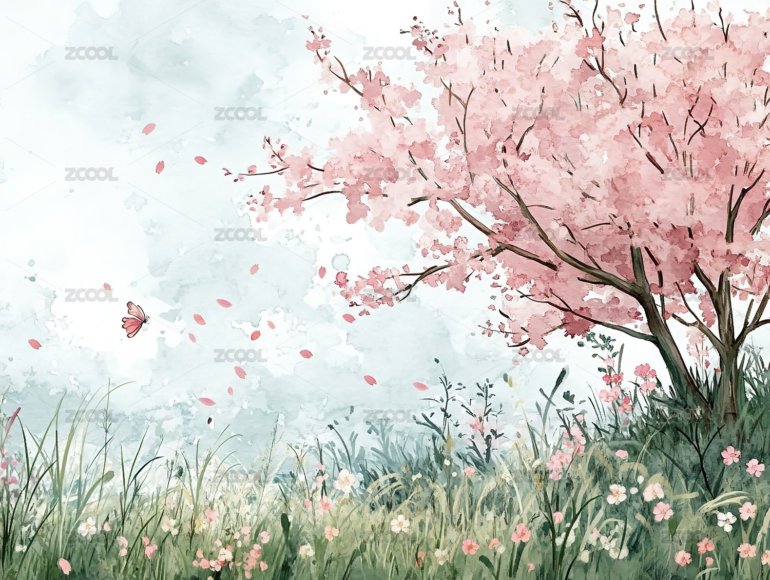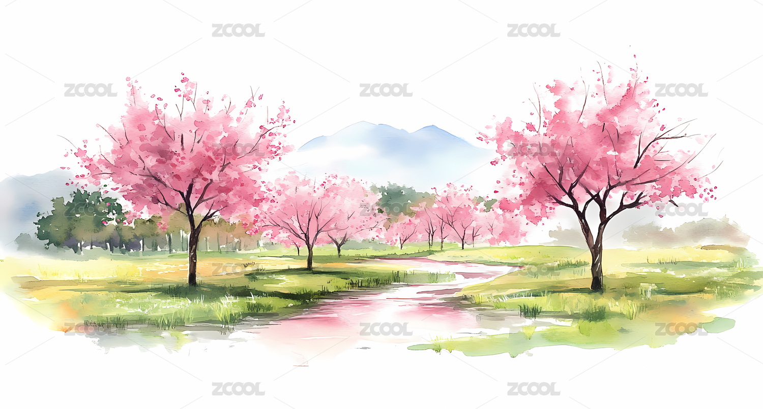 艺术,花朵,风景,美丽,宁静,森林,田园,颜色,水彩,粉色