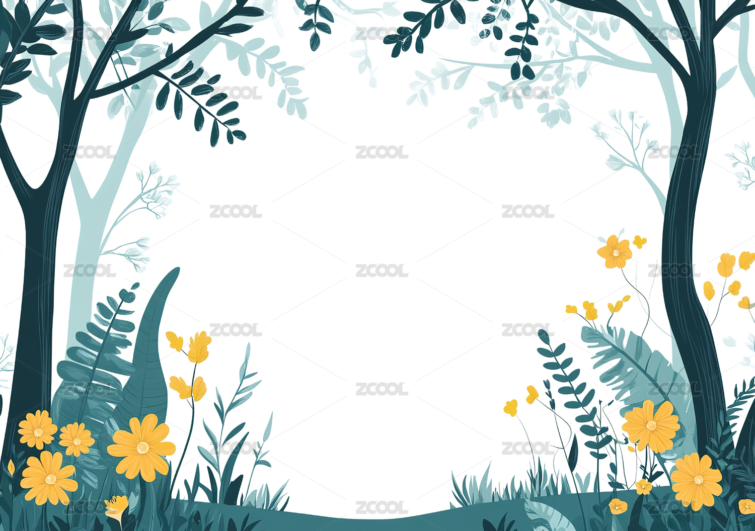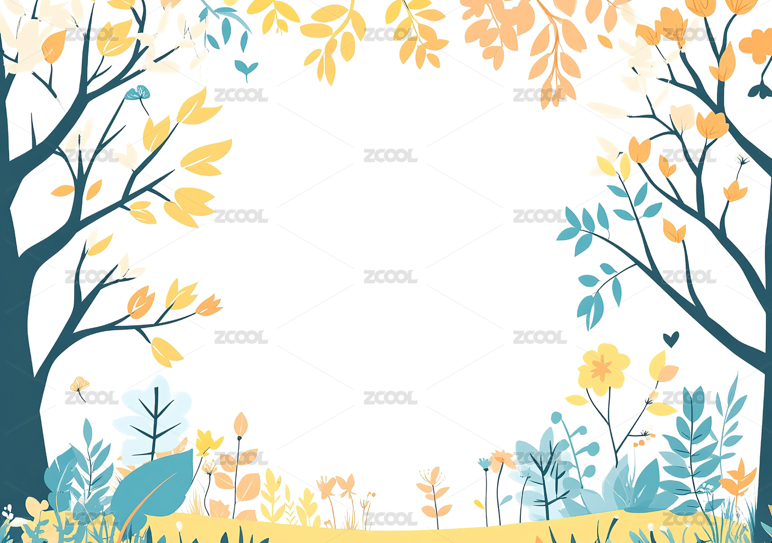 彩色森林边框插画