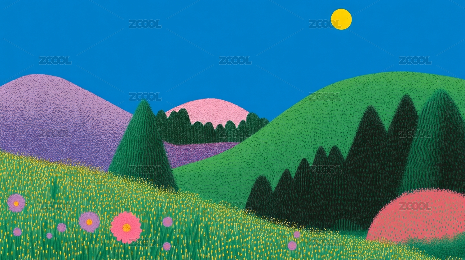 风景,绘画,艺术,色彩,山峦,山谷,自然,生动,抽象,现代