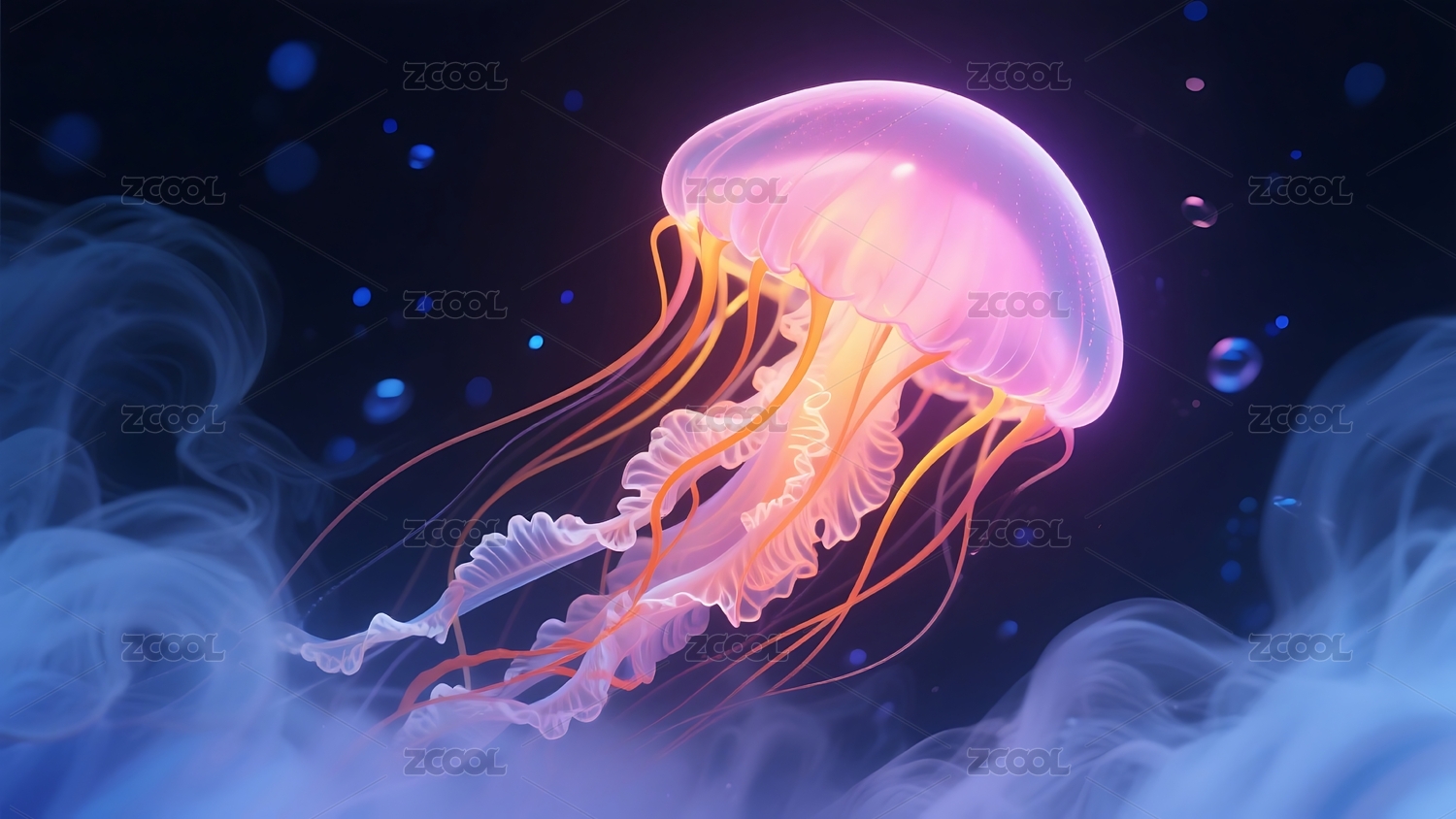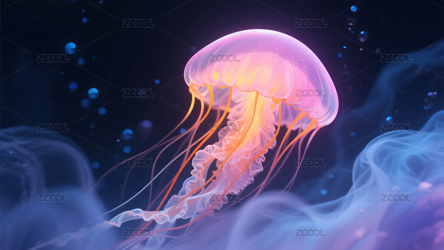光斑,粉色,色彩,水母,紫色,触须,深海,生物,海洋,光泽