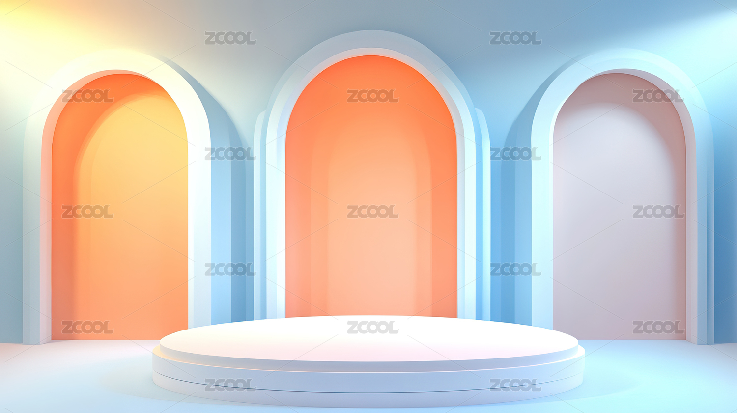 未来感圆形舞台与拱门背景
