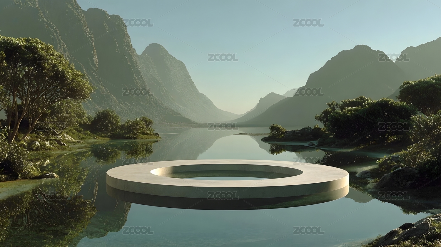 天空,反射,光影,结构,远景,氛围,水面,倒影,山脉,平台