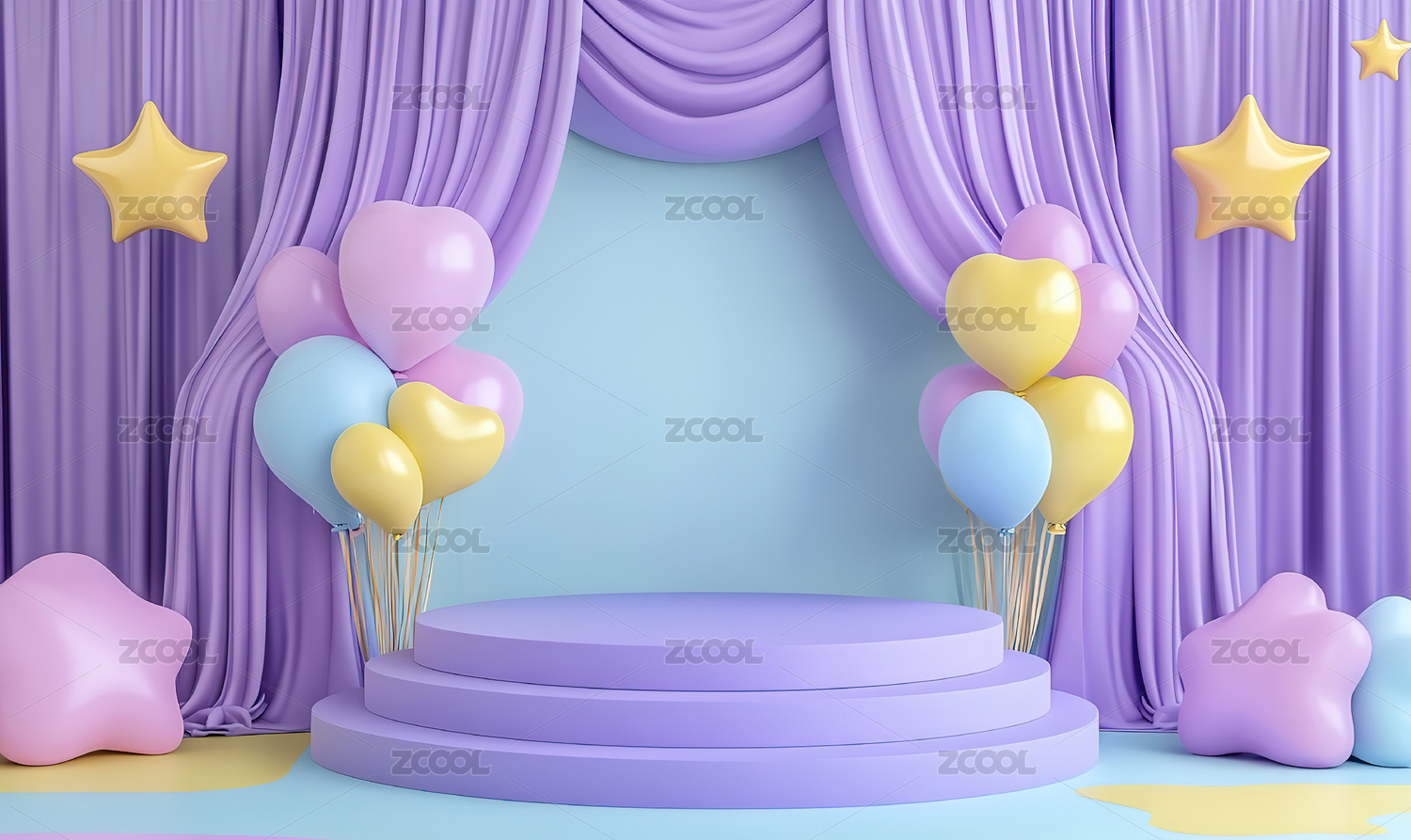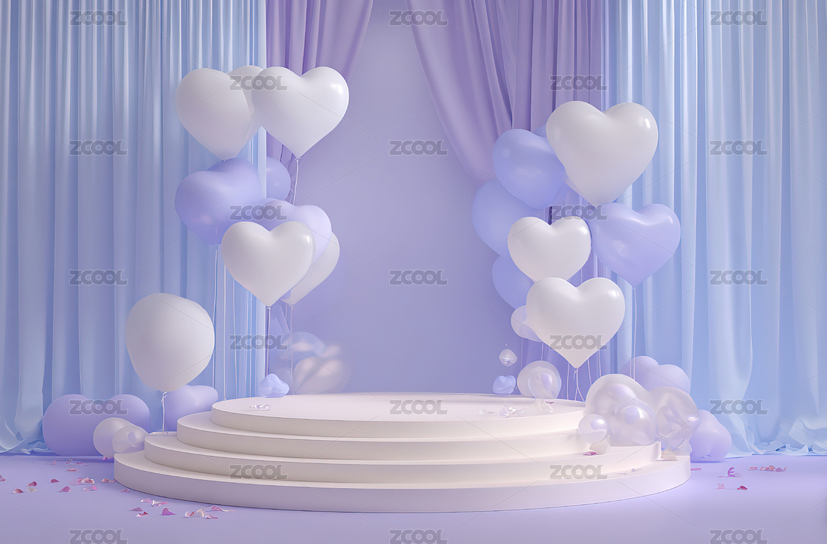 心形气球装饰的舞台场景