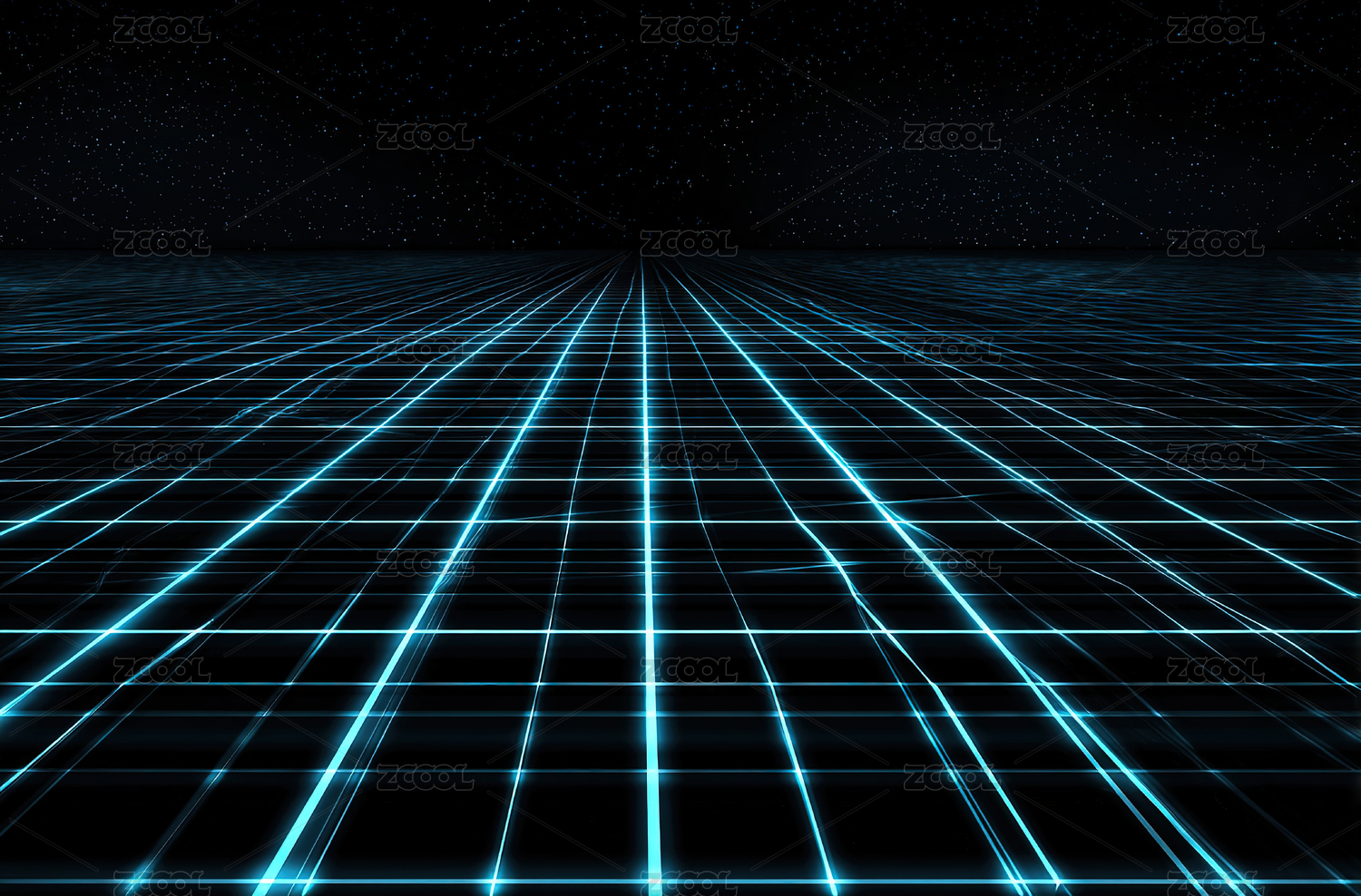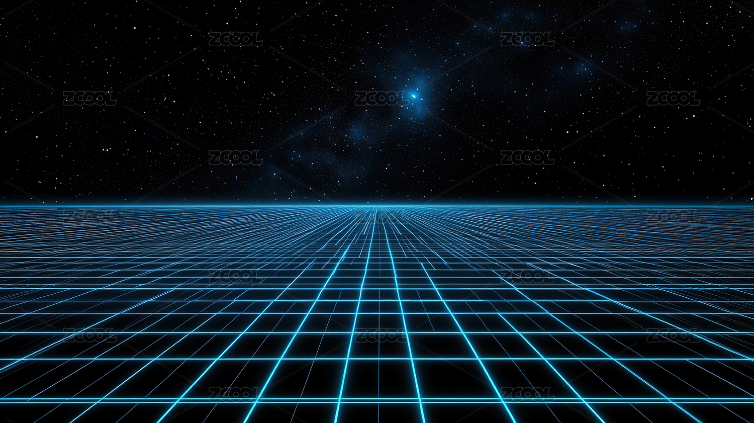 蓝色光网格与星空背景