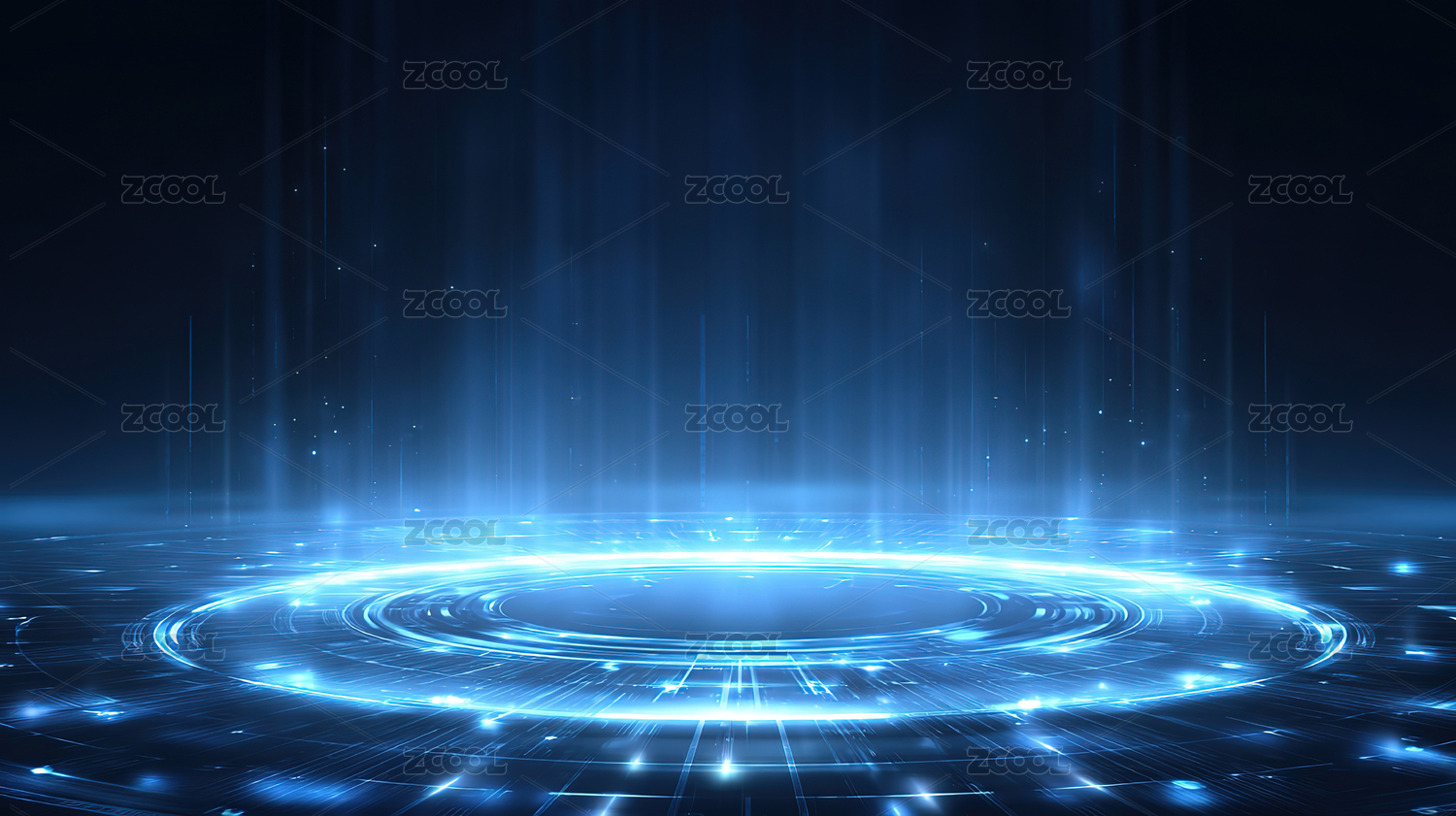 蓝色光柱与光环的科技场景