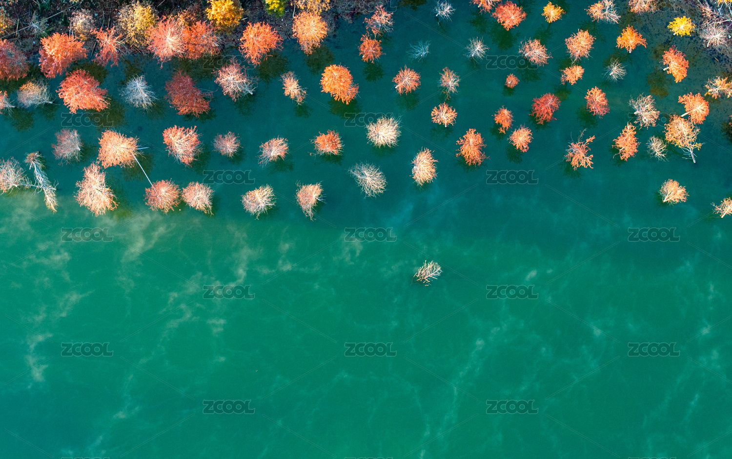 中国安徽宣城宁国市方塘秋天水上红杉林