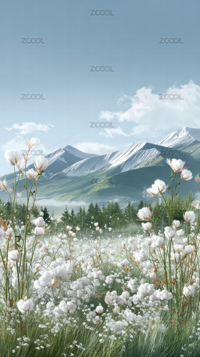 山脉,湖水,花海,蓝天,草地,插画,风景,自然,矢量,模板