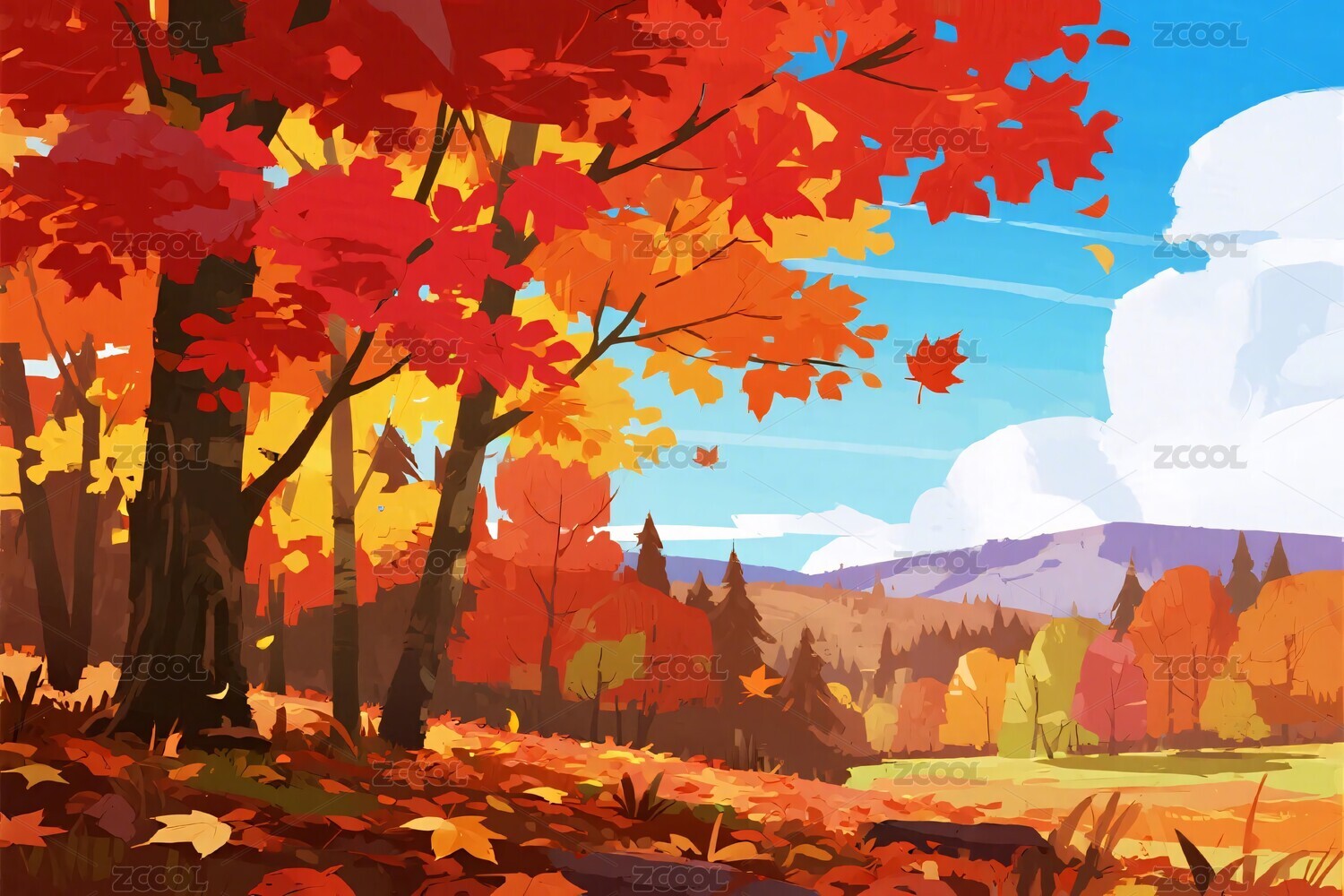 秋日枫叶树林插画