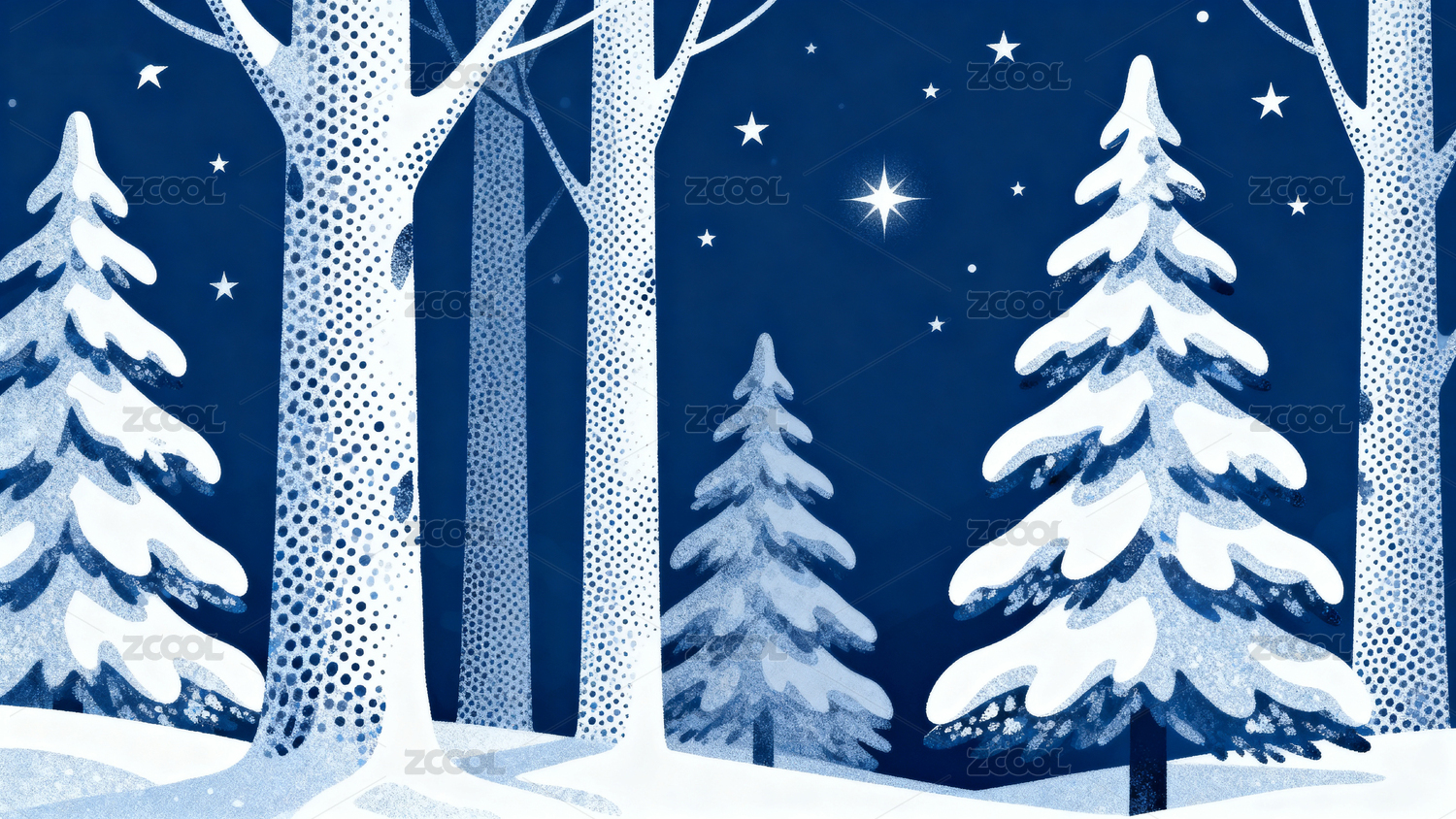 雪夜森林插画