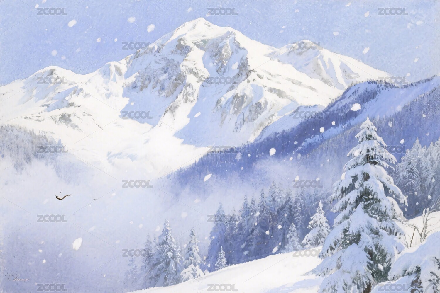 冬季雪山森林插画