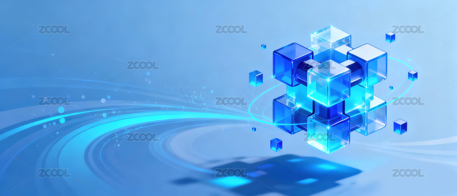 蓝色立体玻璃半透明方块背景