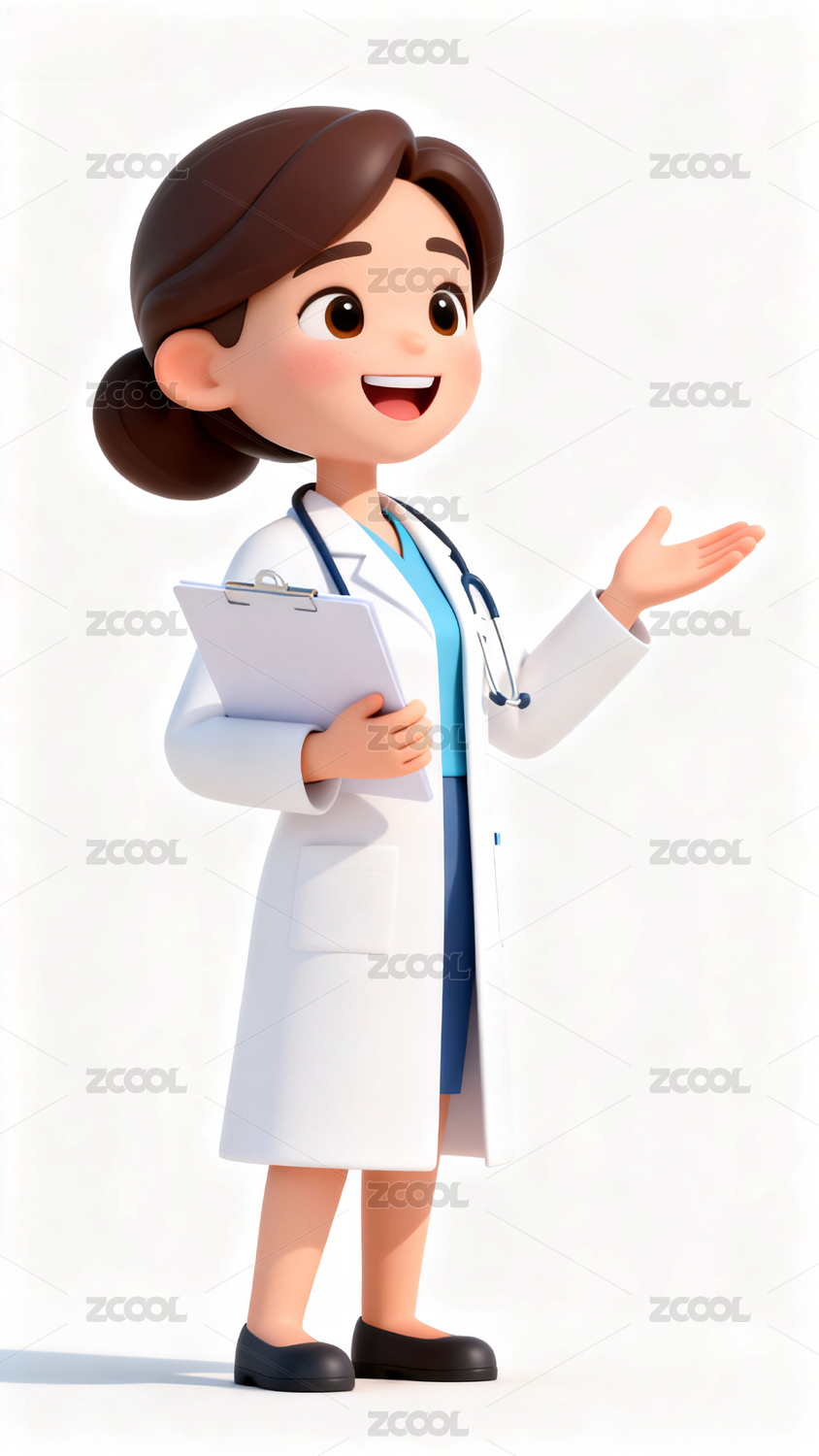 卡通,医生,白大褂,听诊器,平板,眼镜,黑发,蓝服,对话泡,透明