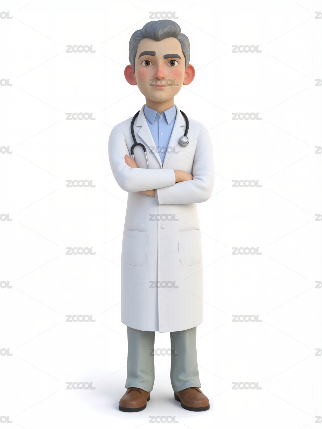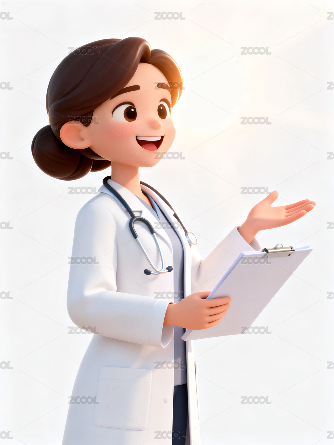 卡通,医生,白大褂,听诊器,平板,眼镜,黑发,蓝服,对话泡,透明