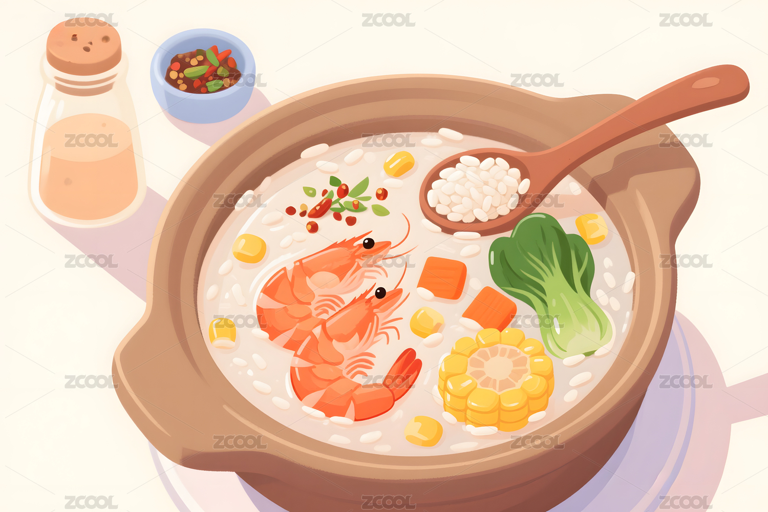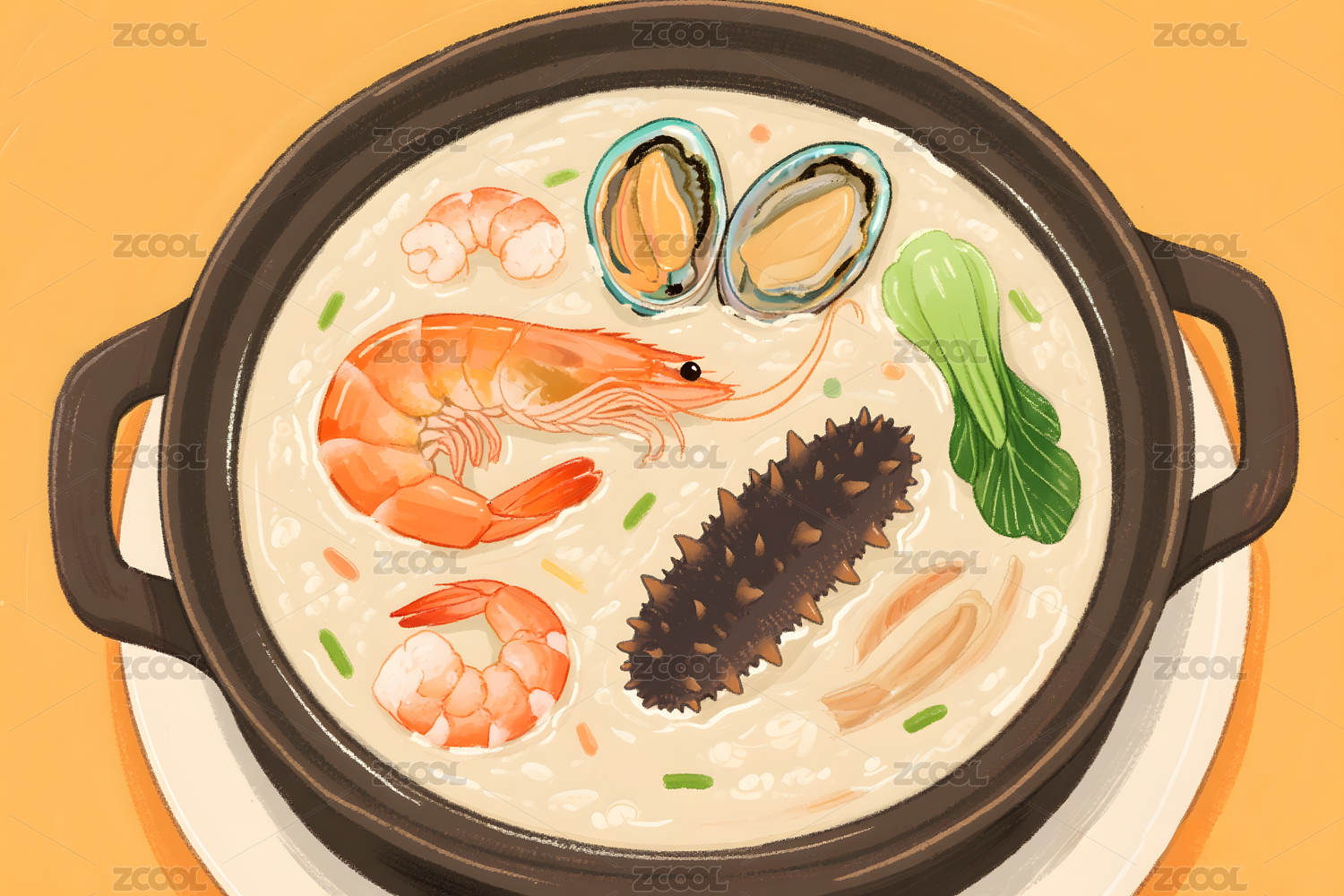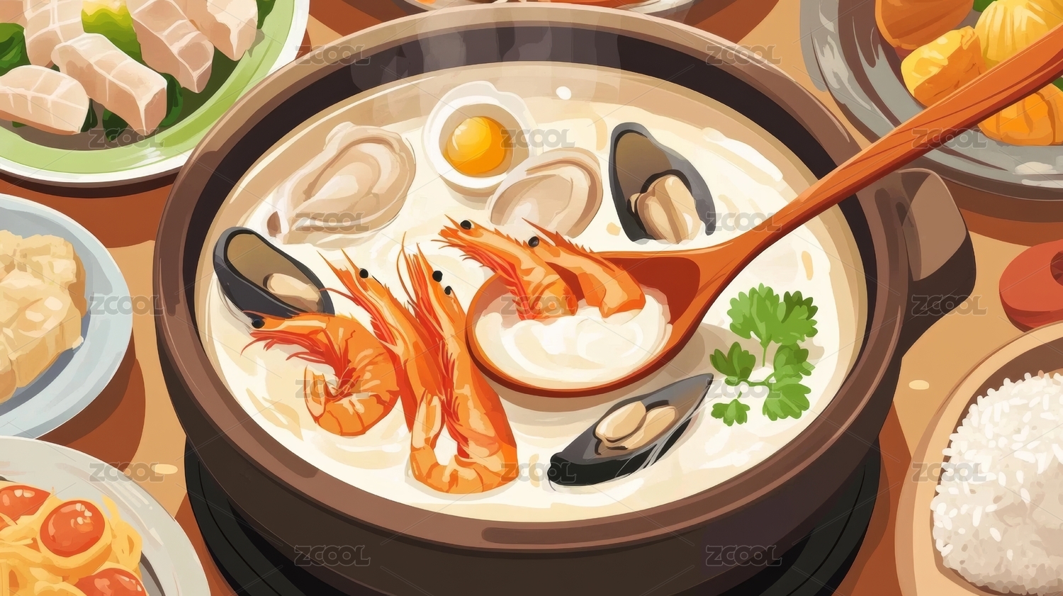海鲜,砂锅,汤,虾,贝类,热气,美食,插画,暖汤,海鲜锅