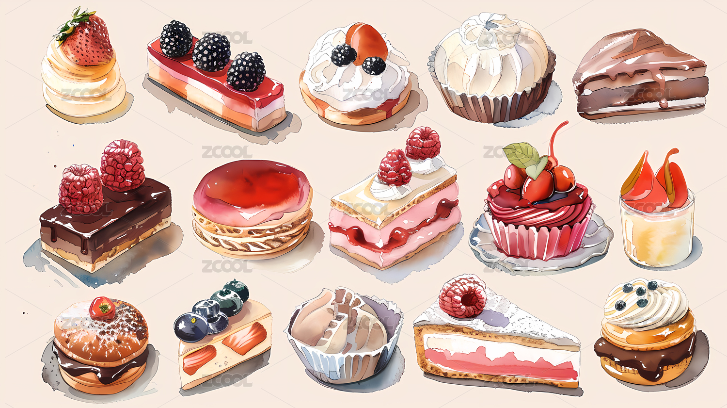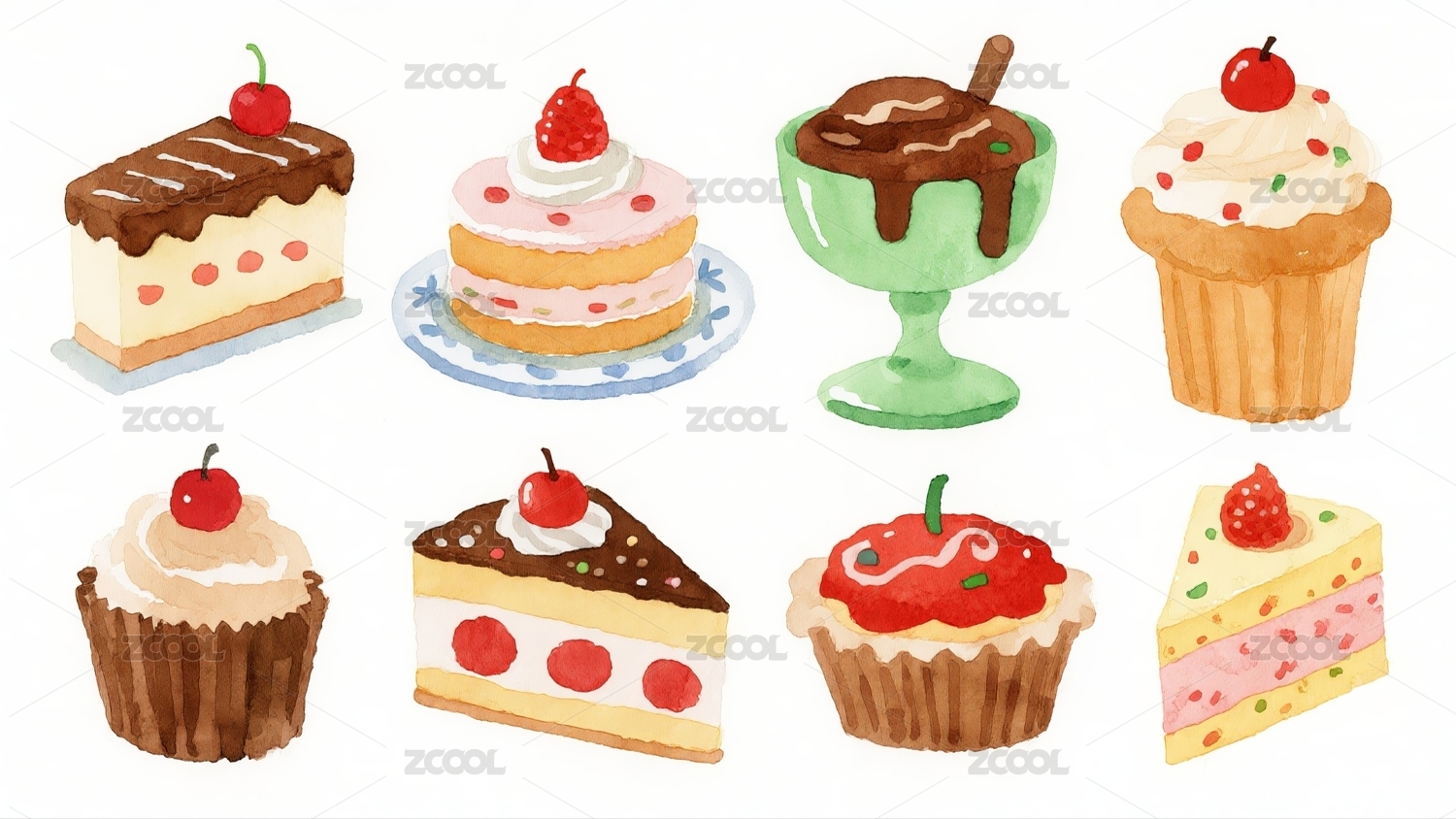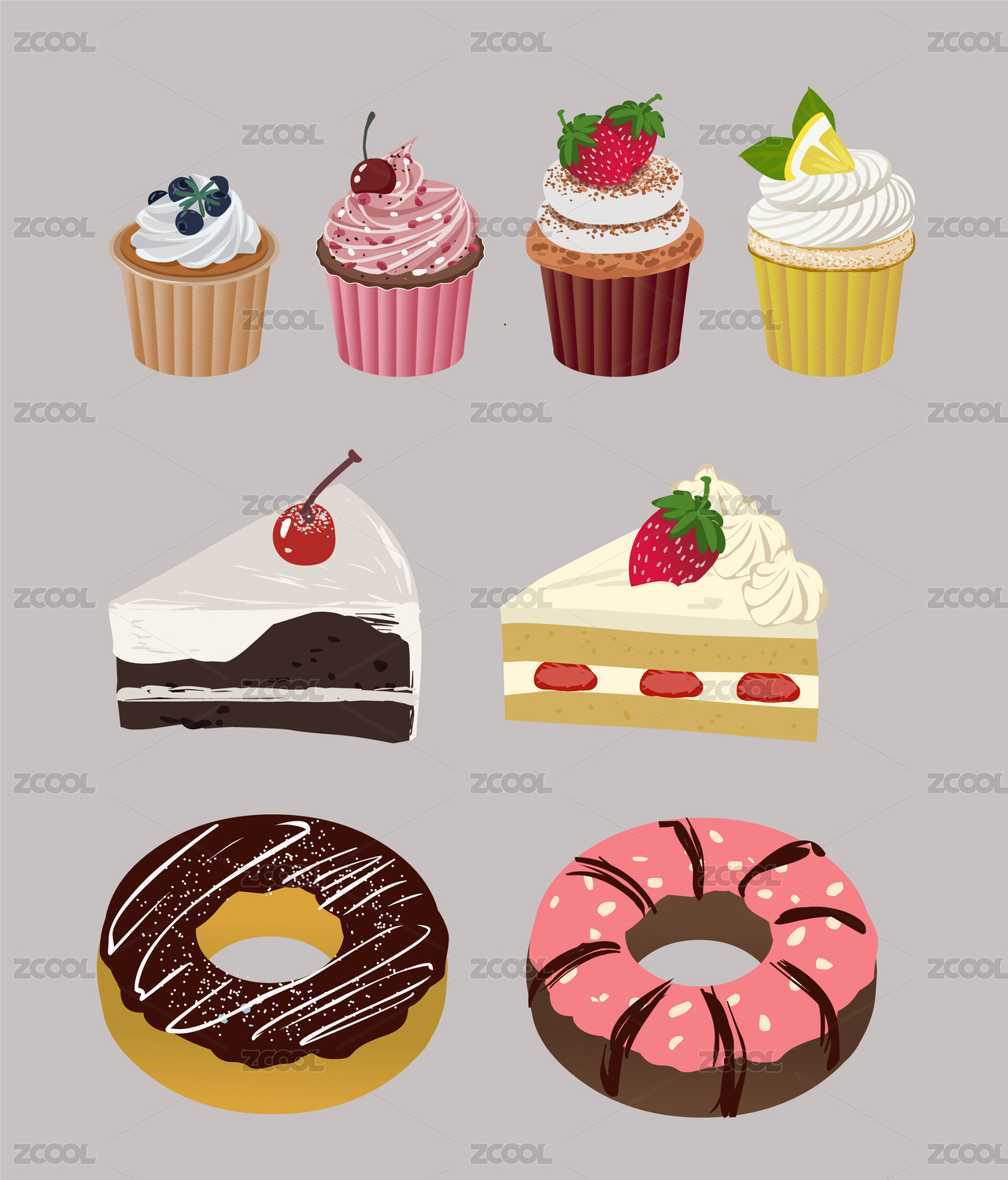 不同口味甜点杯子蛋糕切片蛋糕甜甜圈