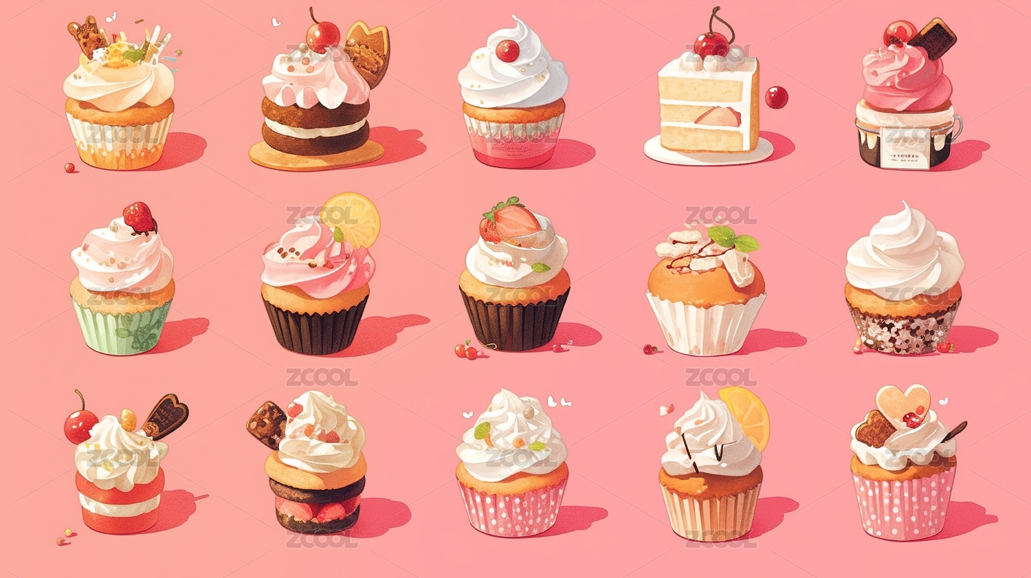 背景,粉色,浪漫,插画,艺术,创意,装饰,风格,美食,甜点