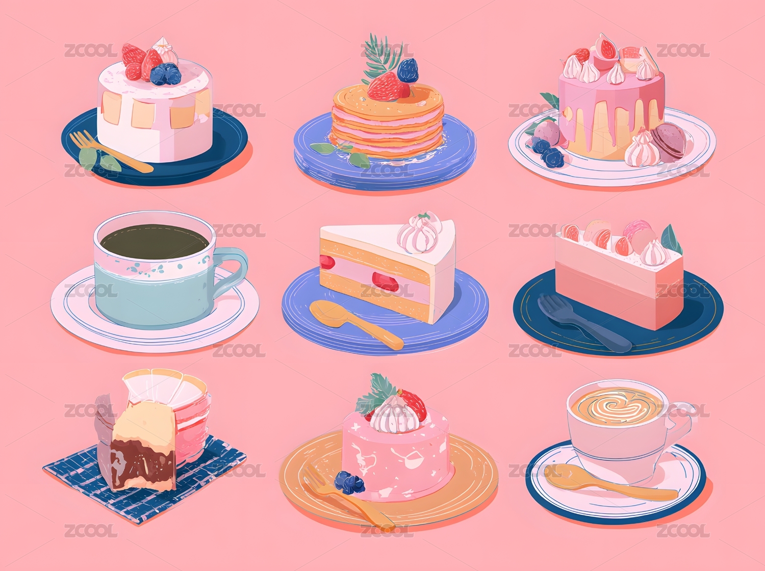 甜美蛋糕美食合集 柔和粉色温馨氛围