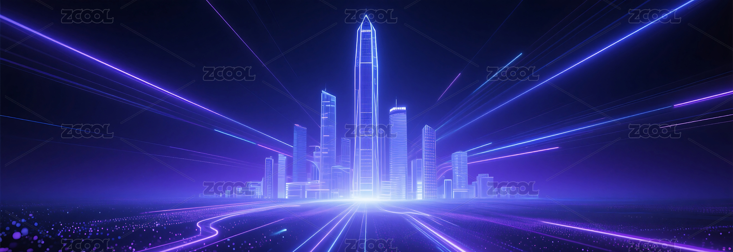 紫色城市建筑光线光线主视觉背景