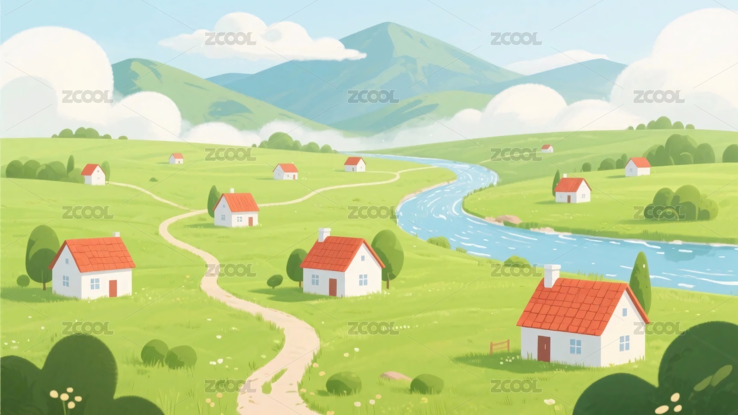 田园风光插画场景