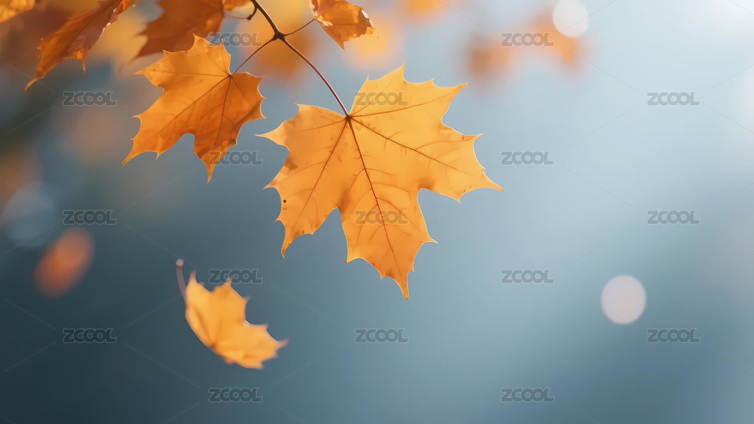 背景,清新,渐变,柔和,自然,黄色,叶子,枫叶,秋天,散落