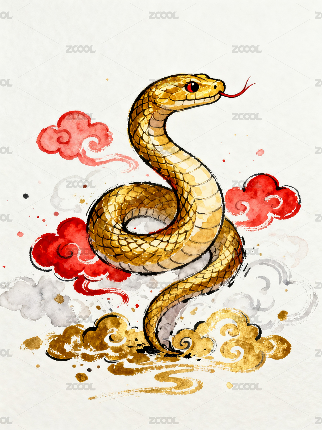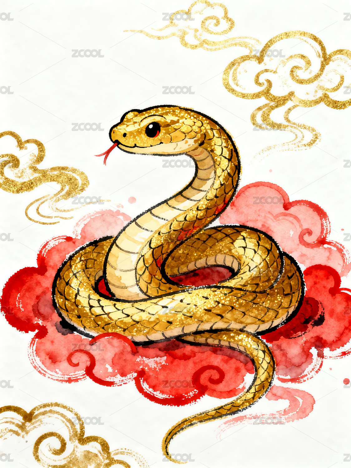 清新明亮一条可爱弯曲盘绕的蛇插画绘画