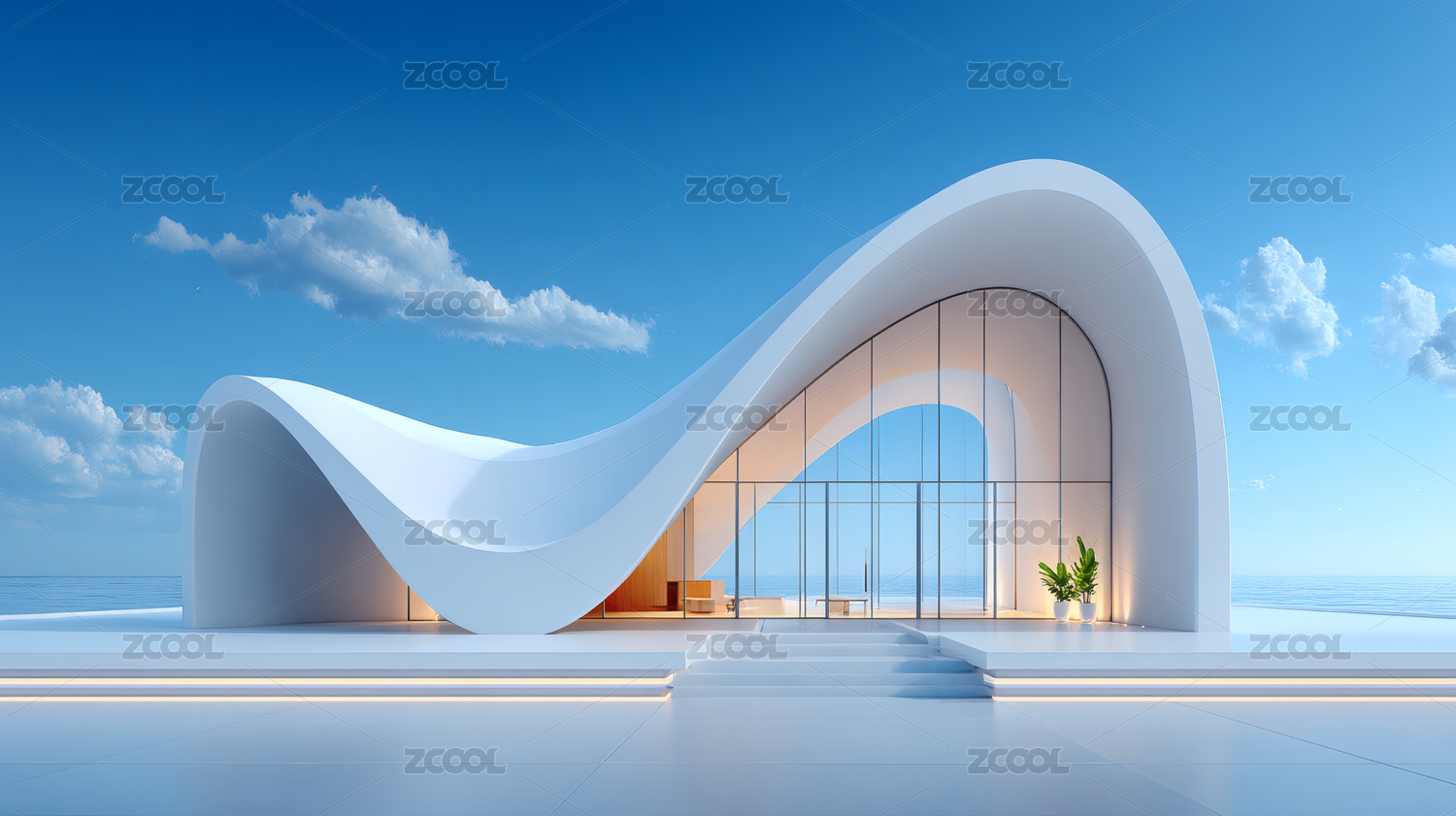 未来主义建筑,纯净天空下的流线设计