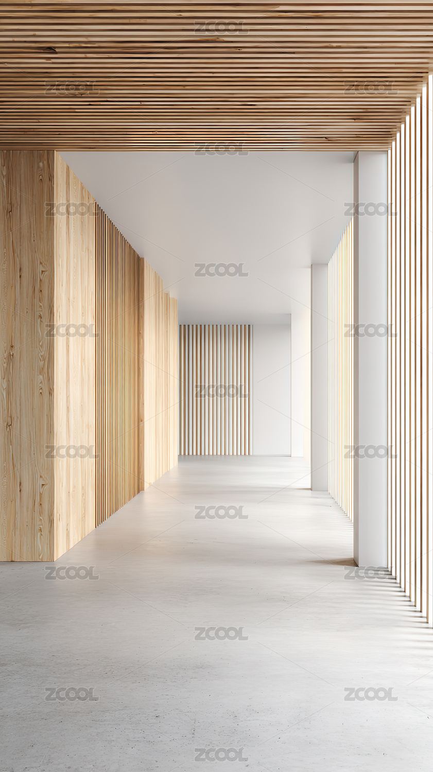 木质条纹墙的室内空间