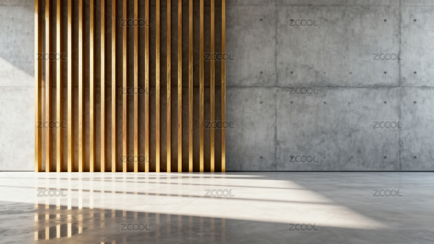 混凝土墙与木条光影