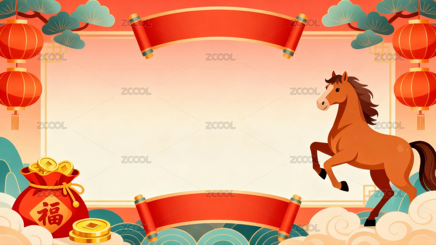 红色,节日,卡通,装饰,边框,喜庆,春节,卡通马,马年,海报