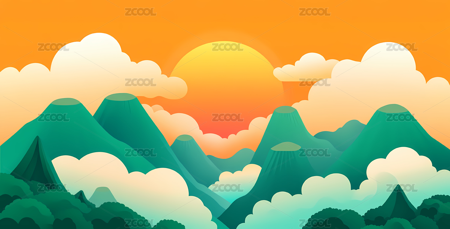 中国风山水风光插画群山中升起的太阳