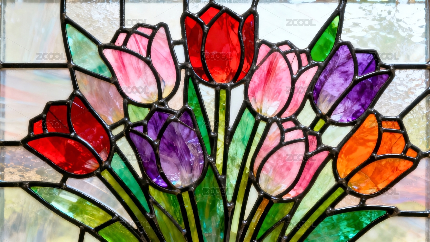 彩色玻璃花卉装饰场景