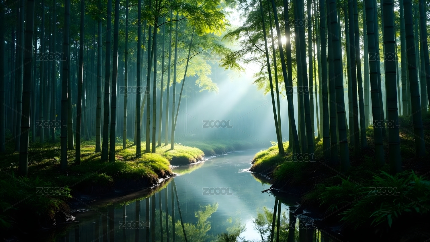 溪流,竹林,阳光,光线,自然,生态,氧气,清新,治愈,宁静