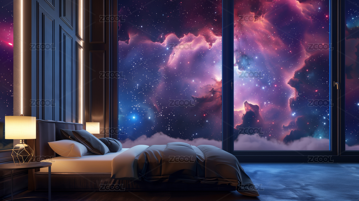 梦幻紫色系卧室室内场景