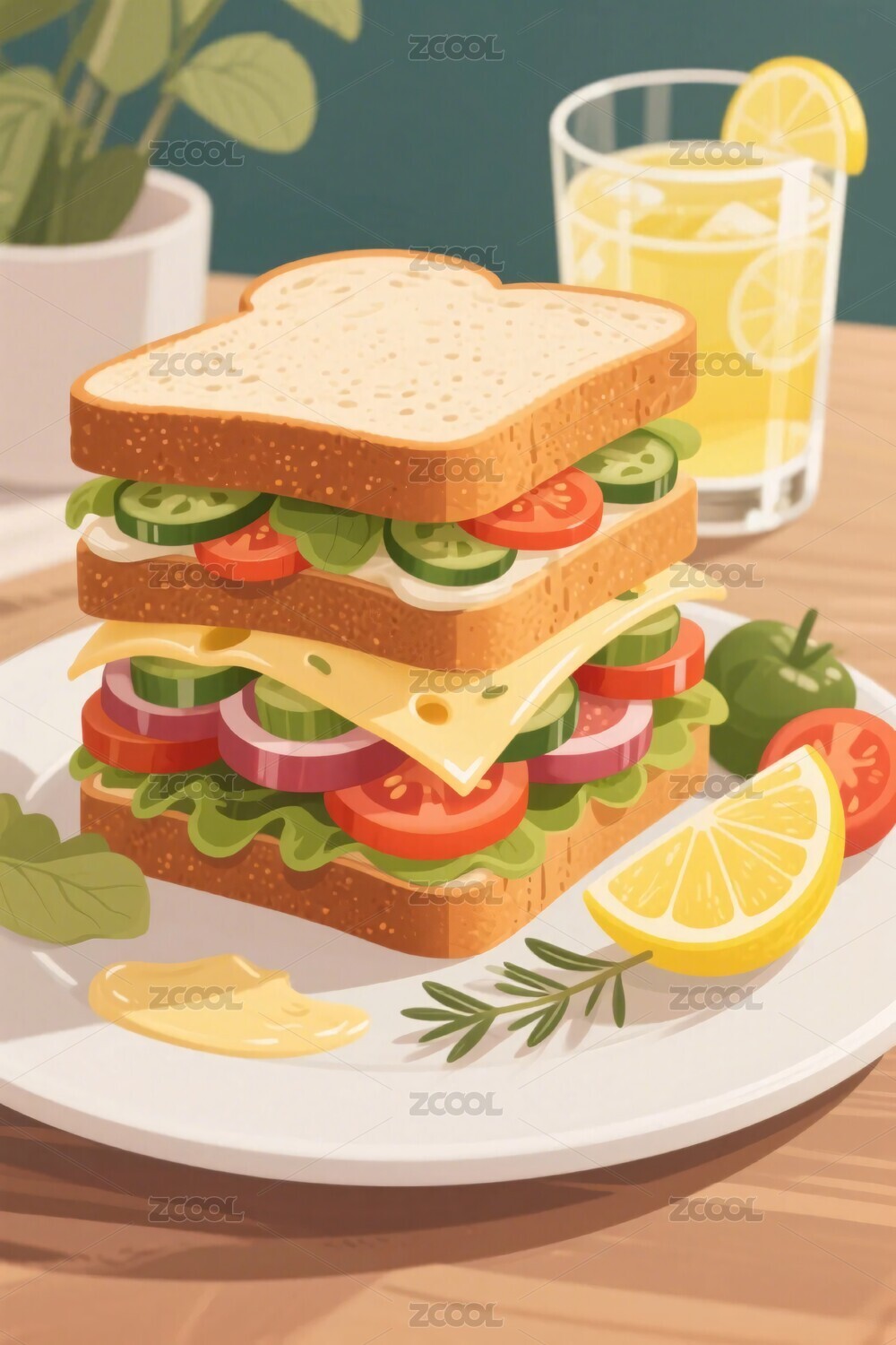 新鲜焦黄色吐司面包面包片3D卡通食品插画