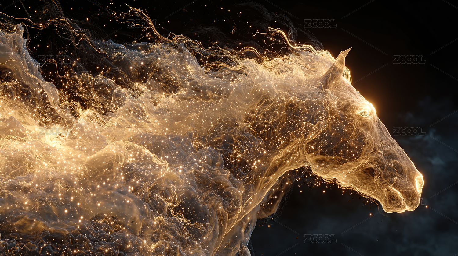 金色粒子奔马:动态光轨与能量流动