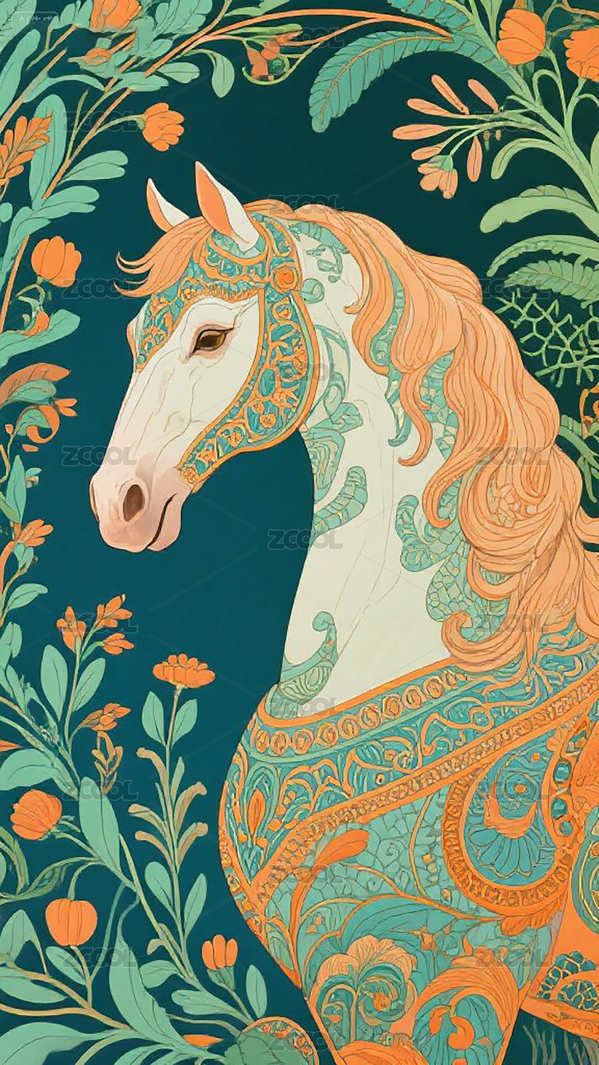 马,装饰,文艺,复古,马年,插画,马头,扁平