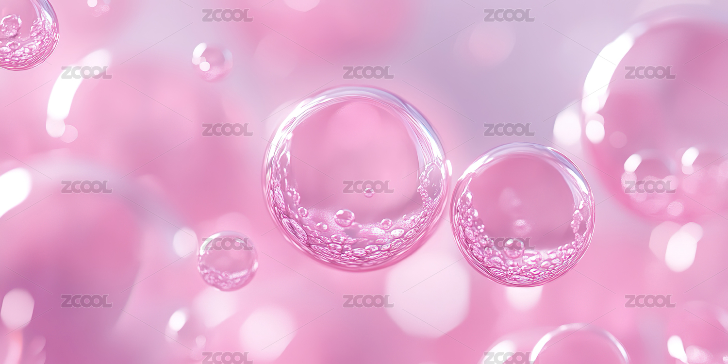 粉色背景下的气泡特写镜头