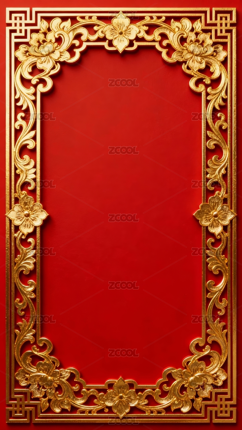 主视觉,商业,壁纸,中式,边框,金红,装饰,展示,国风,复古