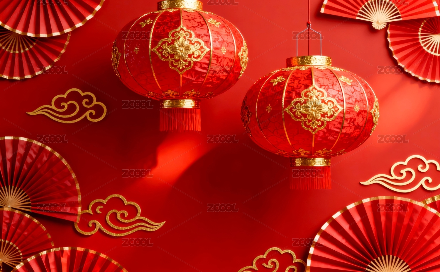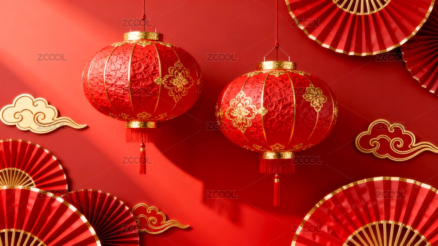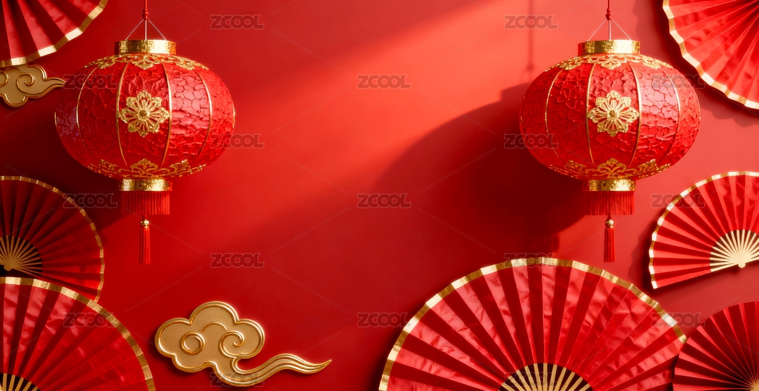 红色灯笼与祥云背景